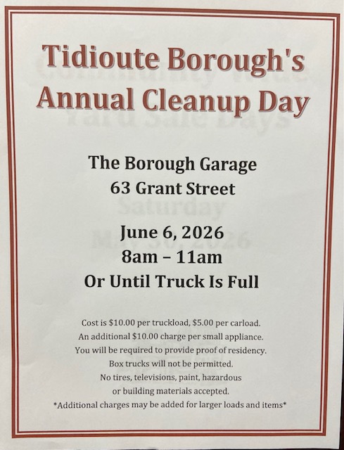 Click on theAdministrationpage for a complete list of Tidioute Borough Council members as well as Southwest Warren County Municipal Authority (SWCMA) members.